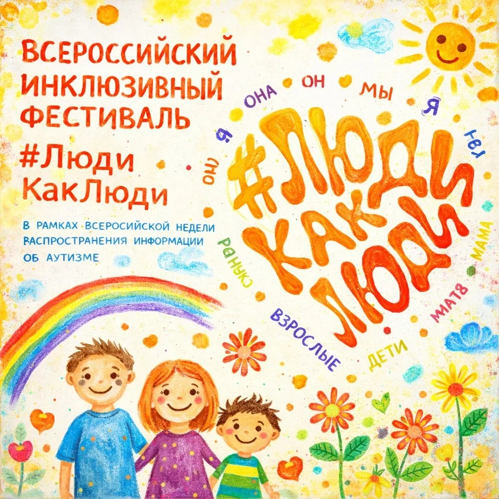 С 29 марта по 5 апреля 2026 года состоится Х Всероссийский инклюзивный фестиваль #ЛюдиКакЛюди, который проводится в рамках Всероссийской недели распространения информации об аутизме в очном и онлайн форматах.