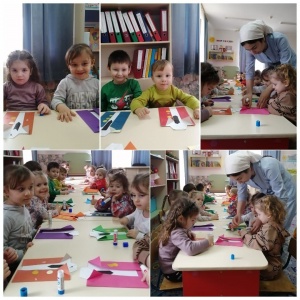 Было проведено занятие в младшей группе "Солнышко" по Патриотическому воспитанию наши мамы и бабушки "Праздник 8 марта" Цель:изготвление подарка к празднику в виде открытки,развитие у детей художественно-творческих способностей.Продолжать учить детей делать открытки своими руками.