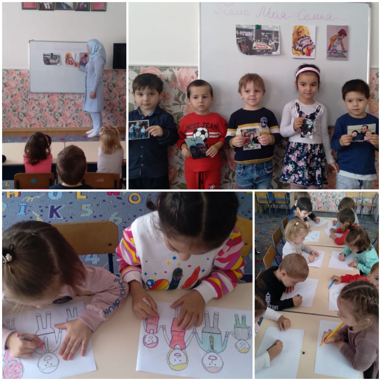 08.10.2021Средняя группа "Радуга". Воспитатель - Алмастова Т.Т. Занятие по художественно-эстетическому развитию (рисование) на тему: "Моя семья". Цель: Научить правильно определять членов семьи на фото, рассказать о них, рисовать характерные черты внешности; направлять внимание детей на передачу соотношения предметов по величине; развивать мышление; воспитывать уважение к родным.