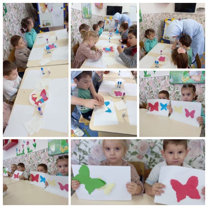 21.10.2021Младшая группа "Смешарики". Воспитатель - Джунайдова Л.Р. Аппликация по программе воспитания, модуль "Экологическое воспитание" на тему: "Бабочка". Цель: закрепить знания по теме "Насекомые"; учить приёмам наклеивания.