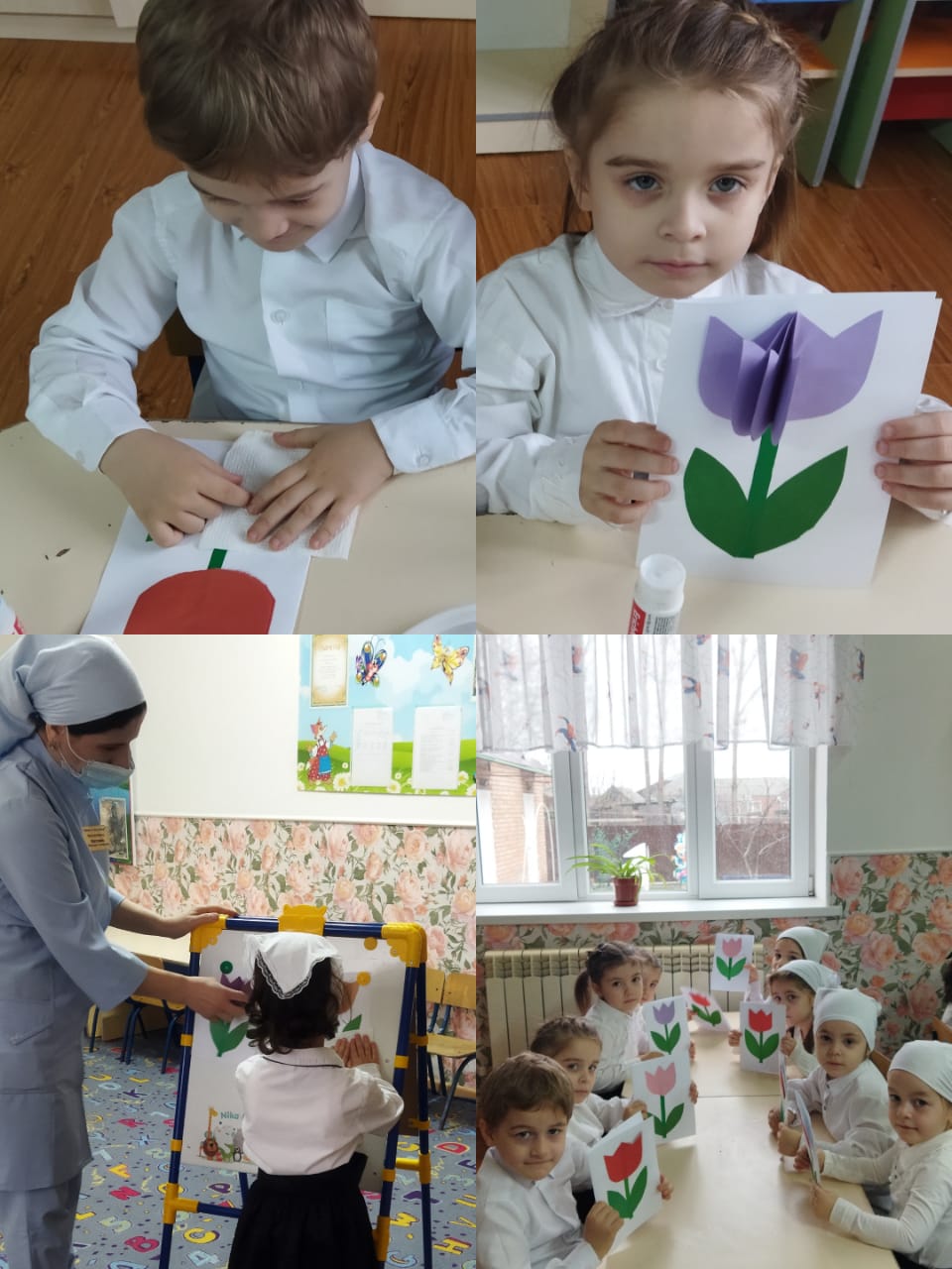 04.03.2022Средняя группа "Радуга". Воспитатель - Матаева Ж.Х. Занятие по художественно-эстетическому развитию (аппликация) на тему: "Открытка маме". Цель: учить наклеивать аккуратно готовые формы по образцу; развивать воображение, творчество детей; учить доводить начатое дело до конца.