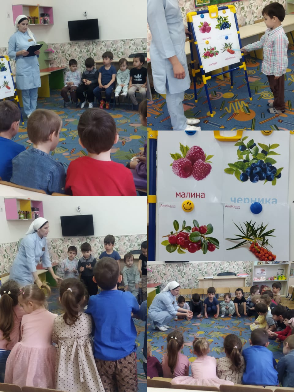 Цель: Уточнить представление о ягодах, особенностях их внешнего вида, местах произрастания; обогащать словарный запас за счет названий ягод и продуктов, из них изготовляемых, учить использовать обобщающие понятия «ягоды».